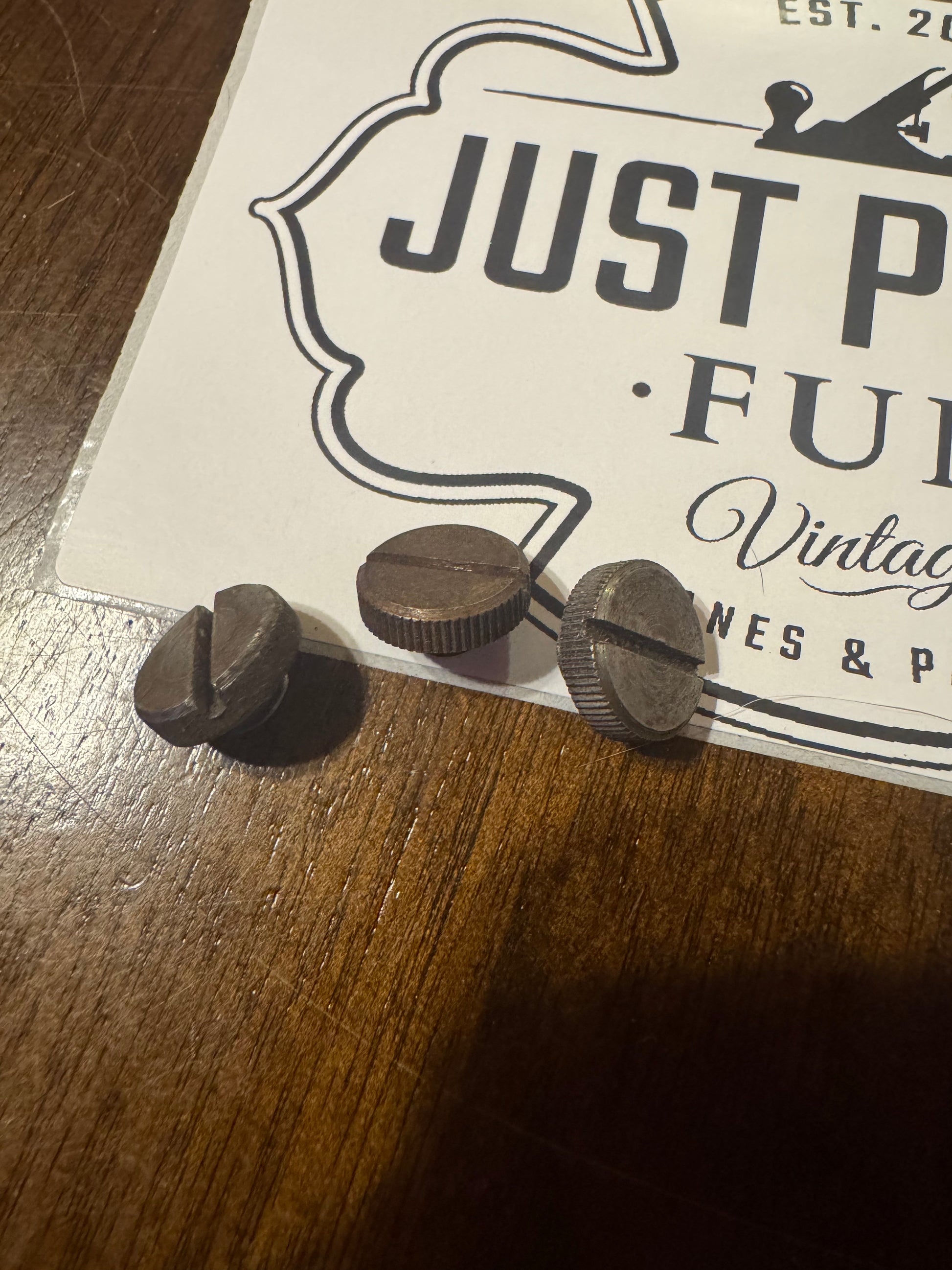 This screw connects the chip breaker to the iron (aka: blade) for a Stanley hand plane