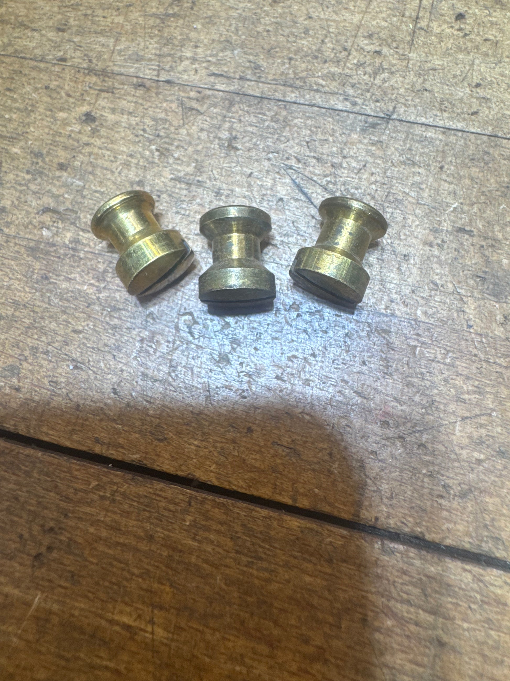 This is the hourglass shaped brass barrel nut for Stanley totes and knobs - this style of barrel nut was introduced during the period we now refer to as Type 11. Some Type 11 planes as well as type 12 thru type 20 planes all had these or similar barrel nuts for their totes and knobs.