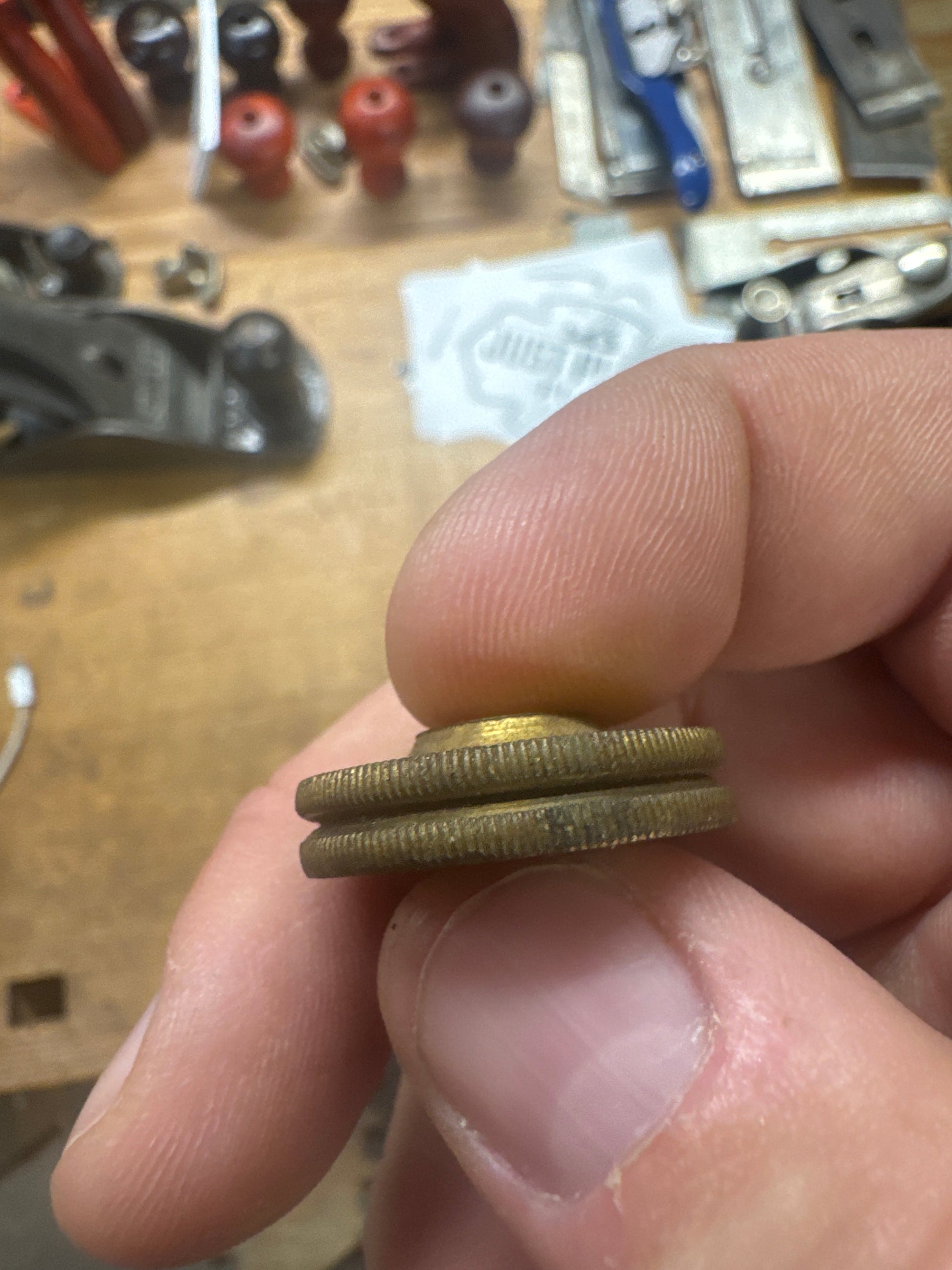 Stanley No12 brass nuts - typical wear for their age but no significant dings to the knurling (see pics)